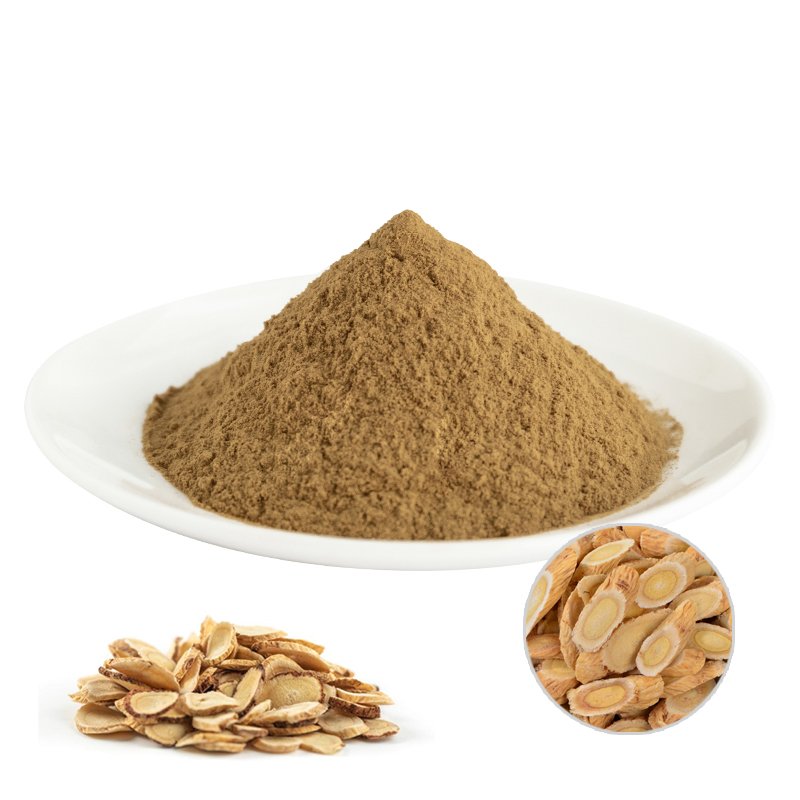 Astragalus extract is the dry root extract of the leguminous plant Astragalus membranaceus, which has the effects of enhancing immunity, enhancing energy, anti-fatigue, anti-mutation, protecting liver, and inhibiting osteoclasts. Astragalus polysaccharide has the effect of lowering blood lipids, that is, lowering cholesterol and triglycerides, and increasing high-density lipoprotein; it can prevent and treat cardiovascular and cerebrovascular diseases, such as atherosclerosis, coronary artery disease, peripheral vascular disease, and hyperlipidemia. wait.Astragaloside IV has the effect of significantly reducing blood sugar, glycated hemoglobin and urinary protein, and can reduce AGEs in the renal cortex and serum, showing that astragaloside IV has antioxidant effects, inhibits aldose reductase, and inhibits the system The effect of mesangial cell proliferation and reducing renal hypertrophy. Adding appropriate excipients to astragaloside IV can make an oral preparation, which is used to prevent and treat diabetic nephropathy.