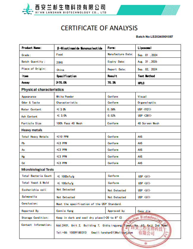 Product Name:Liposomal NMN 70%